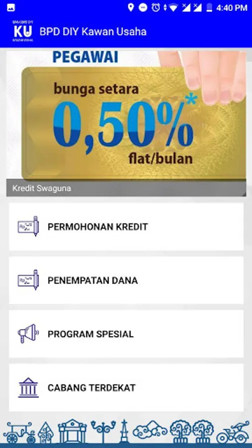BPD DIY Kawan Usaha (BPDDIY KU) is one of PT. Bank BPD DIY services based on application which facilitate and assist customers in making Loan and Fund placement anytime anywhere.