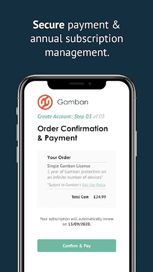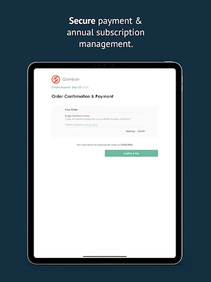 Gamban is the single most powerful and cost-effective online gambling blocking app, offering full, unlimited protection across all of your devices for only £24.99 per year or £2.49 per month.