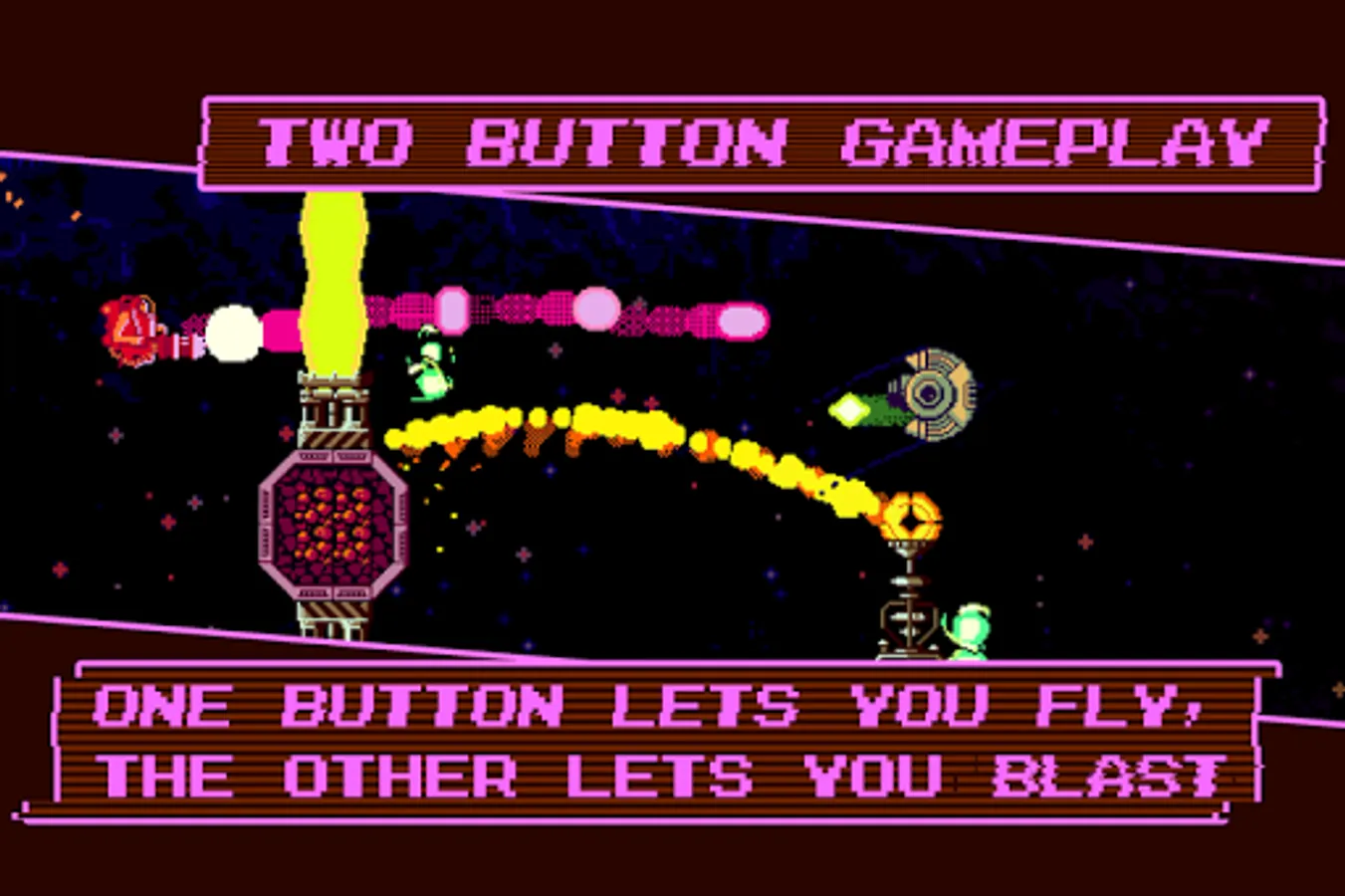 - Two button gameplay: One button lets you fly, the other blasts obstacles into heaps of rubble.