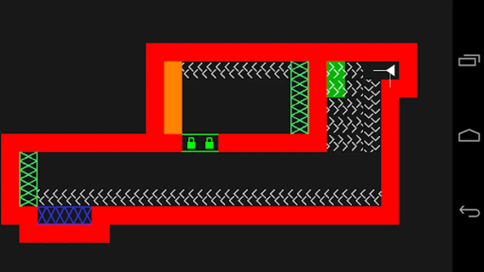 Your goal is to get your white triangle to the orange goal area. The triangle will automatically move horizontally, but if you hold a touch anywhere on the screen the triangle will move vertically. There are green and blue reflection areas that when touched will change the direction your triangle will go in. So if you bounce into them you will now be going in the opposite direction.