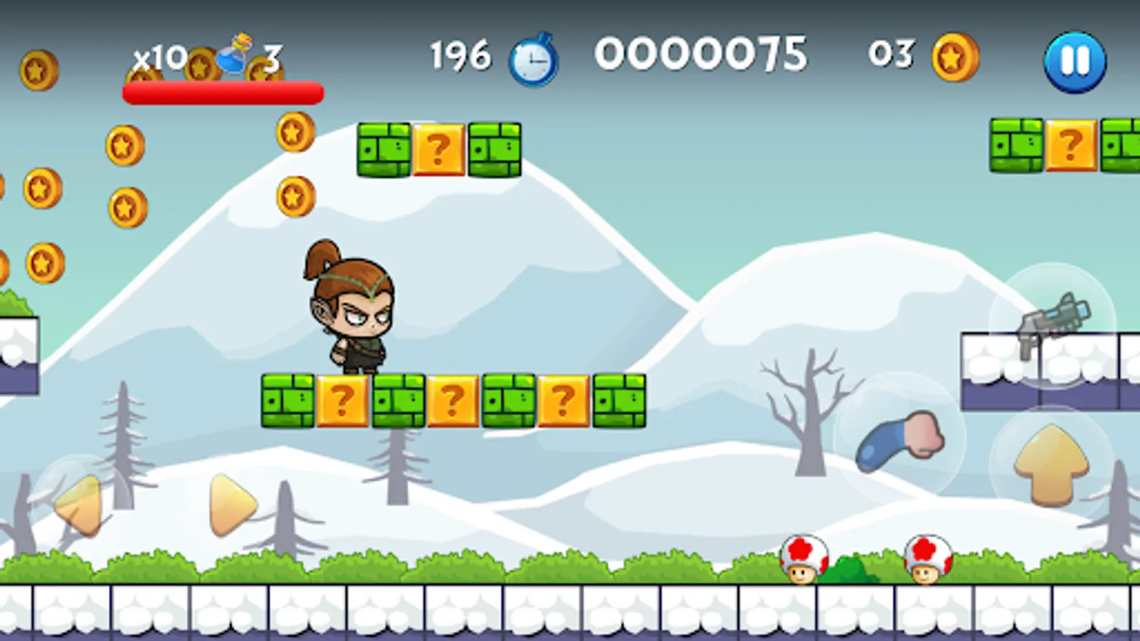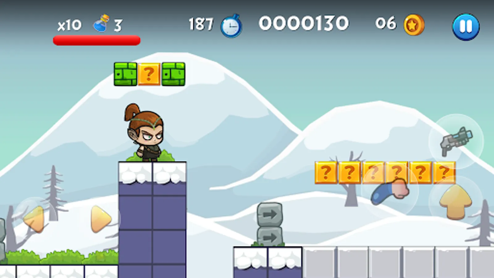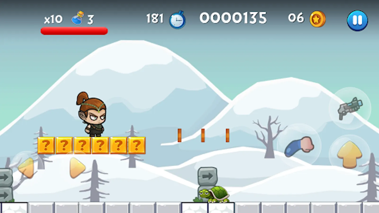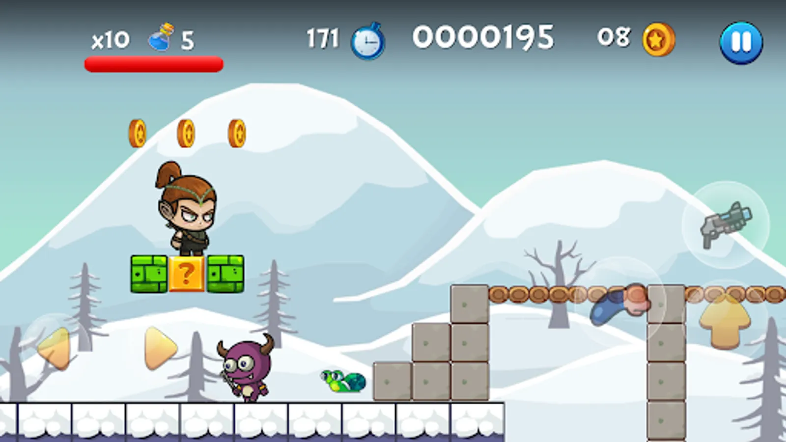 Download Elf Adventure for free on your Android device, use the on-screen button to run, jump, shoot, and attack, and have fun running and jumping in the jungle.