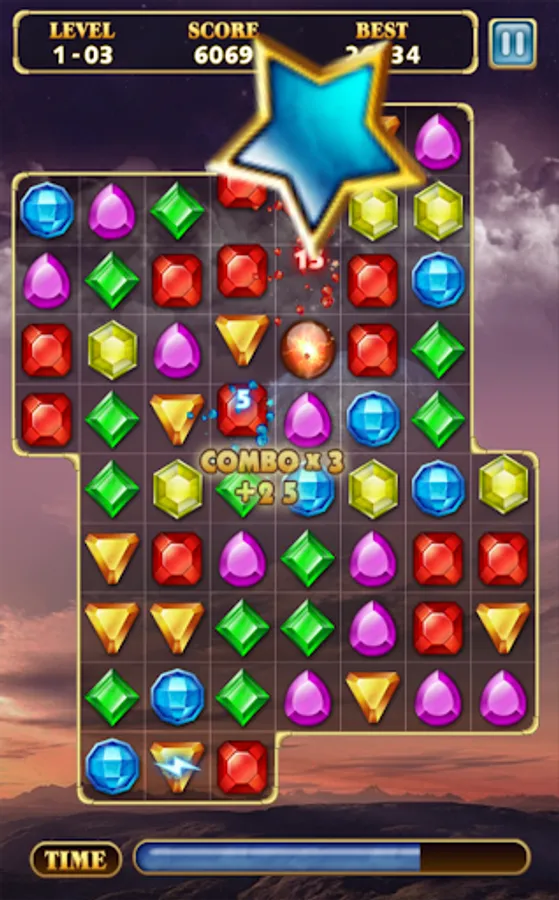 2: Match the jewels until the board transparency,the Jewels star will appear.