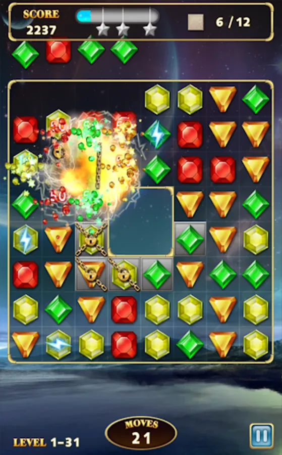 - For the chained jewel,it cannot be move, but can be destroyed by eliminating jewels inside.