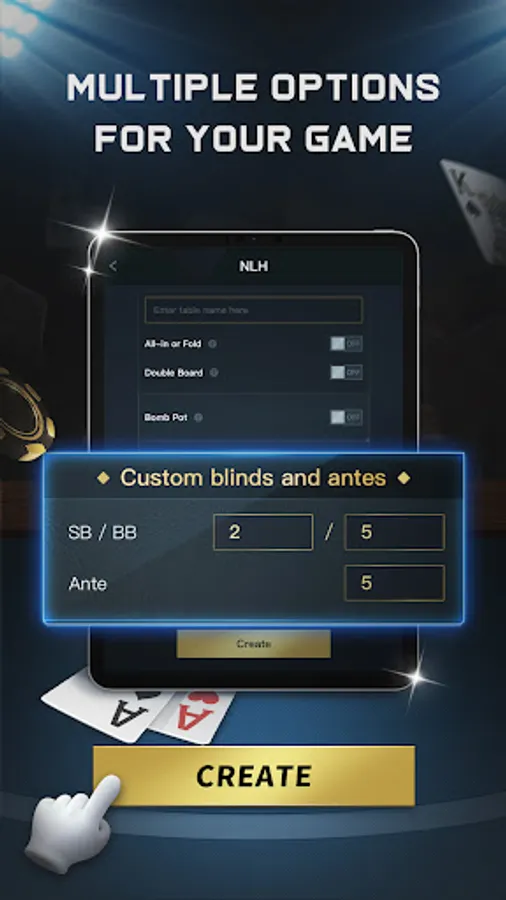 Create your own private tables, set your own rules, and invite your friends for a personalized poker night.
