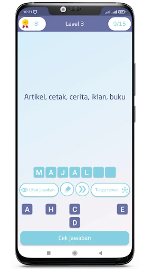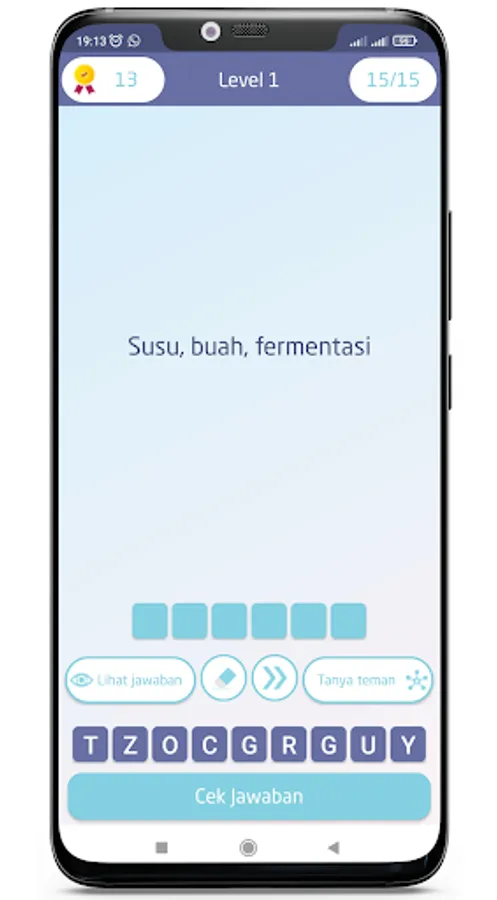 Brain Teasers Game is an Indonesian word guessing game that contains puzzles in the form of nouns and also word equations that you can play offline. In this game you will find puzzles that only consist of a few words as clues for you to guess the answer. The word can mean the nature, other meanings, function / use or form of the object. This will sharpen your brain because you have to think to find the meaning of the words displayed.