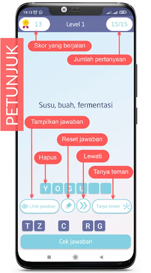 With the ask a friend feature you can ask for help from your friends who you can send questions directly from the application. See the short guide in the screenshot, so you can easily operate this game.