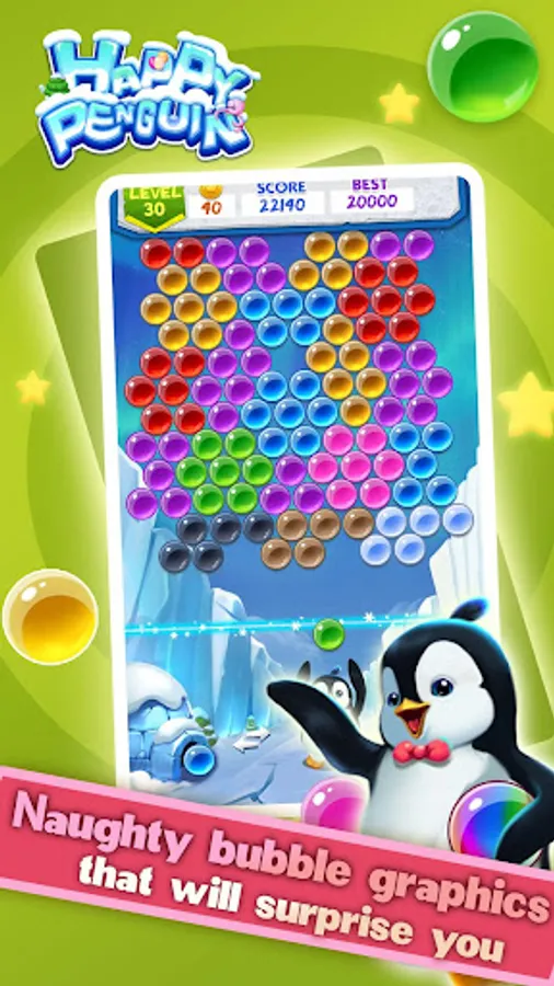 Happy Penguin Alex is not so happy these days because of naughty bubbles that always make trouble. Little fishes are trapped by rows of bubbles. Help Penguin Alex to pop away those bubbles and save little fishes. Sometimes, you may run into the octopus that will stop you way. Don’t be afraid, just POP!