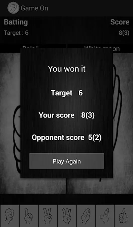A Simple Hand Cricket game requires 2 Android devices (Bluetooth Enabled) to play. Developed to support almost all android devices.
