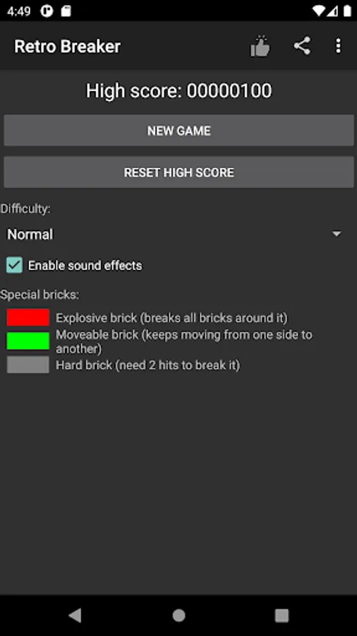 The aim of the game is to break the falling bricks from the top with a randomly moving stone or ball.