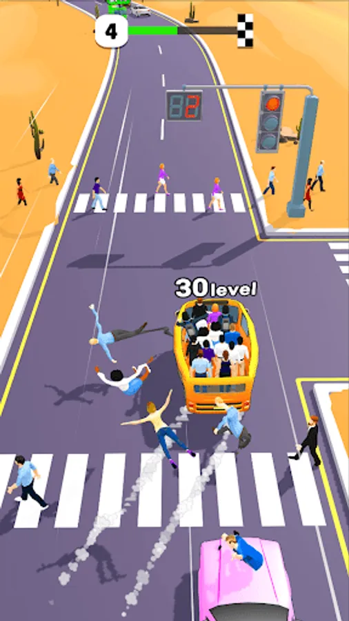 Avoid high level red vehicles, absorb green vehicles and get your passengers safely to the finish line! So enjoy your ride!