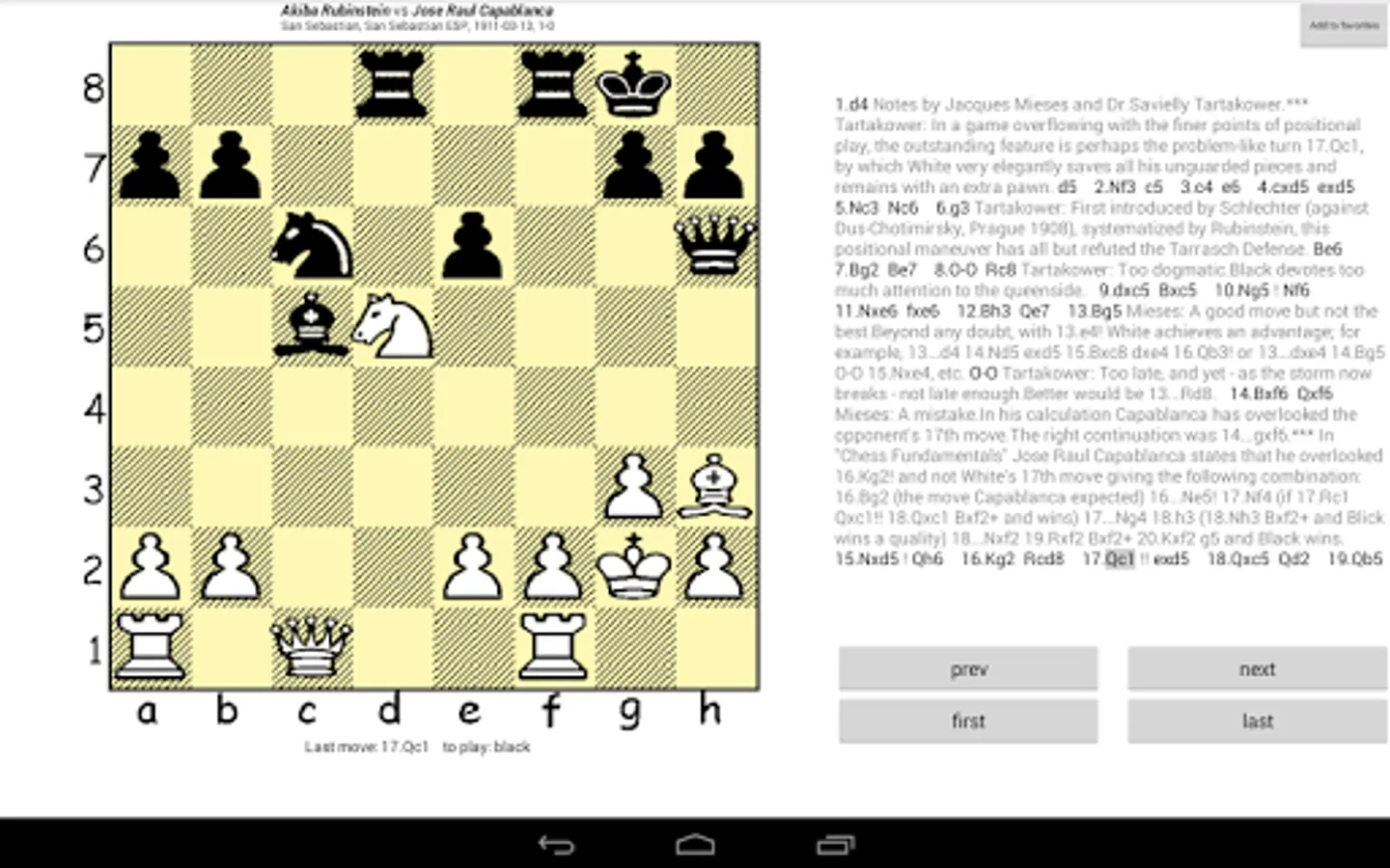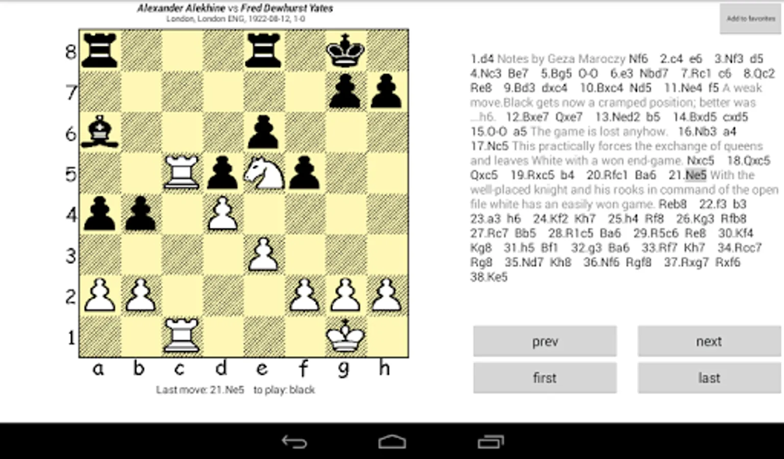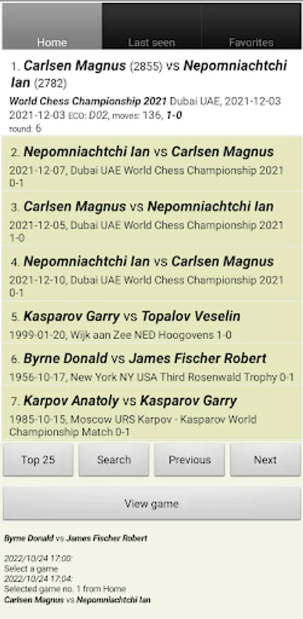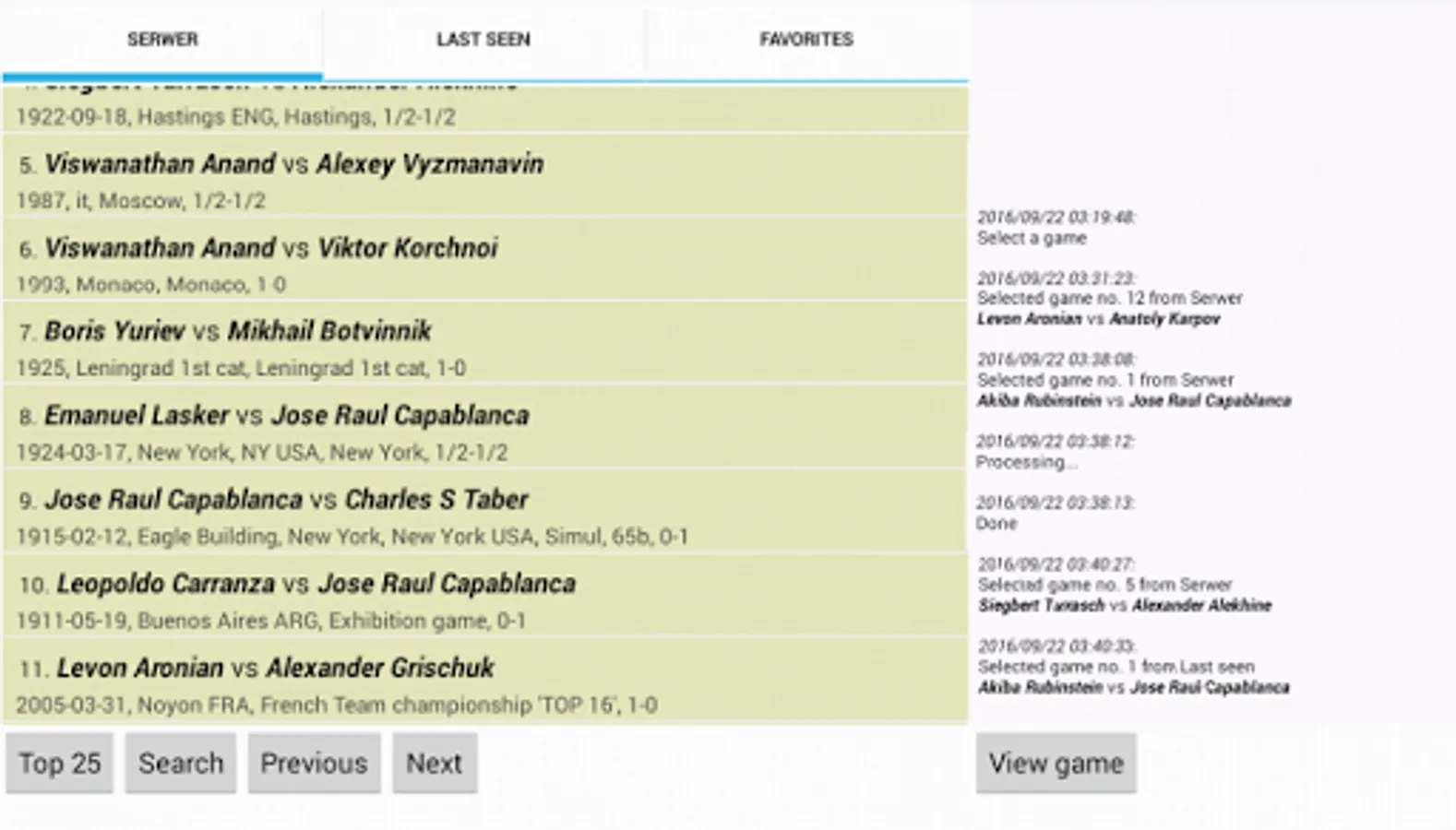 Do you like chess? Now you can view your favorite chess games in a single application. All you need is our Chesser application and an internet connection. Then you can explore our chess database completely for free! Chesser is an easy viewer of chess games in pgn format. It needs no additional permissions and no access to your mobile phone data either. Everything is online and for free. We provide more than 900k chess games in pgn format. We have collected the most important games of the great chess grand masters and our database is still growing. There is a simple search tool to look for games where you can search according to chess player name, chess game year, place where the chess game was played, result, opening, etc. Some games have comments so you can see what the ideas, threats and motivations are behind the moves in each game. This is version 1 of our application. However, we are working on the next generation of Chesser in which we want to introduce more interesting features. Enjoy viewing your favorite chess games :)