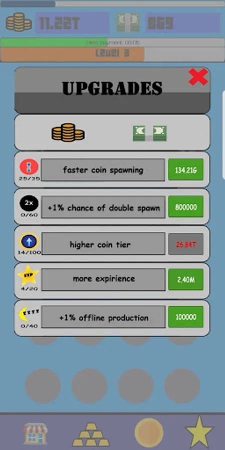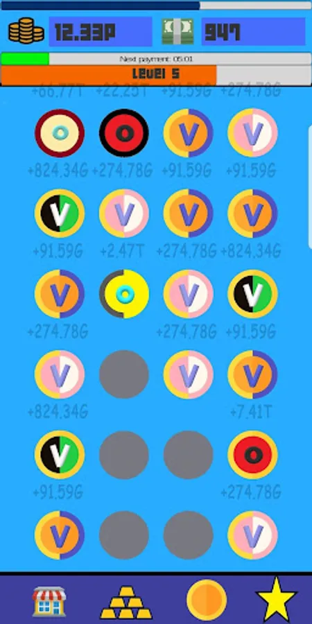 gather money for diamonds, use diamonds to make Crowns and progress in the game. You can earn new coins by merging coins together - the quicker you merge, the more you generate. Spend your virtual coins in the shop on upgrades for even faster earnings. Try to collect more then 100 different coins!