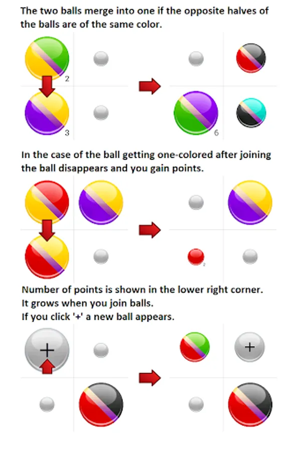 In the case of the ball getting one-colored after joining the ball disappears and the player gains points.