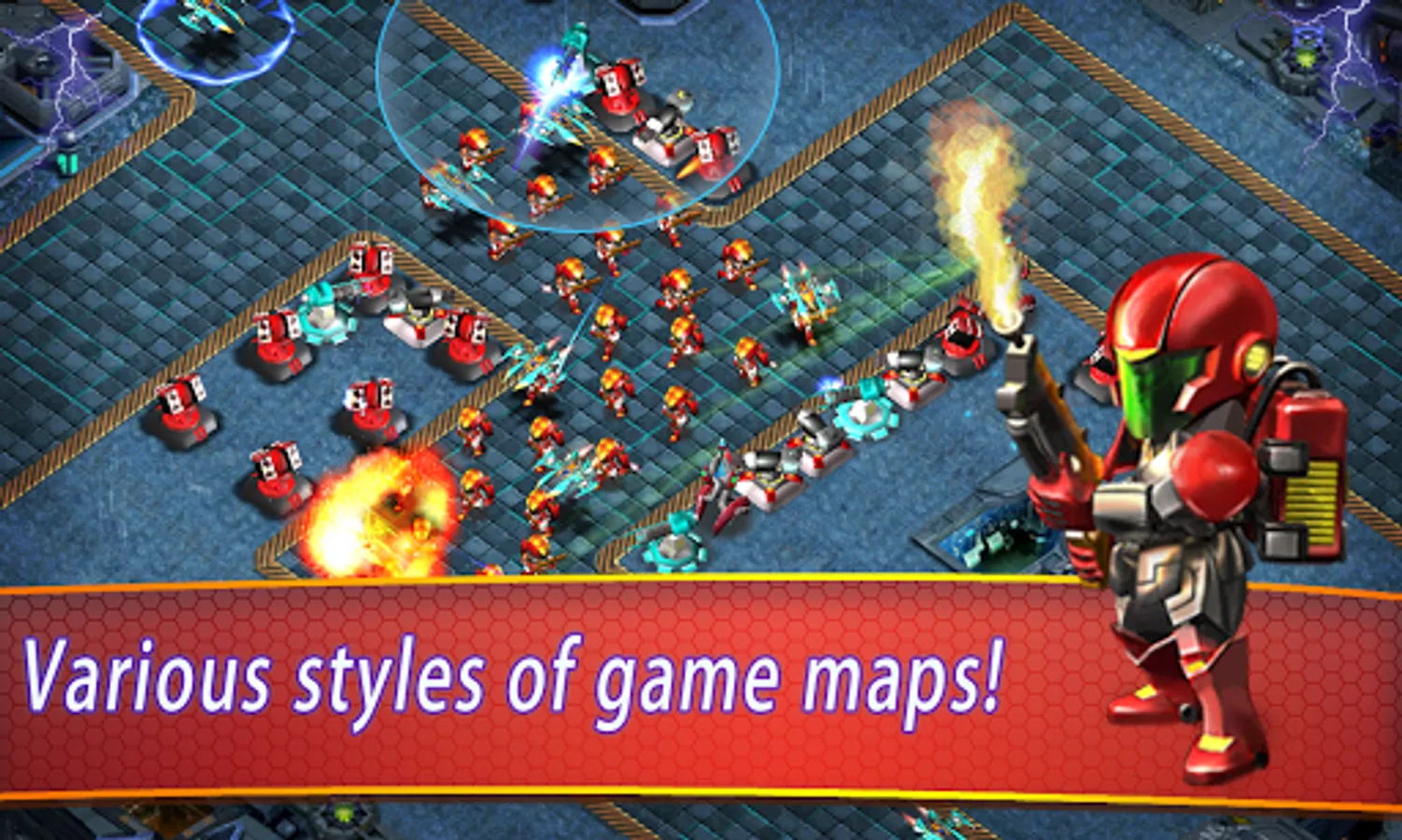 - Defend your base with Gatling, Heavy Gun, Energy Cannon and Tesla.