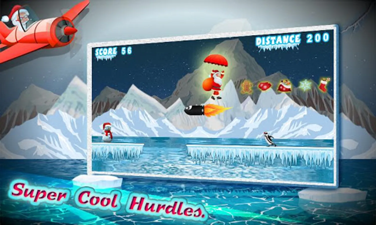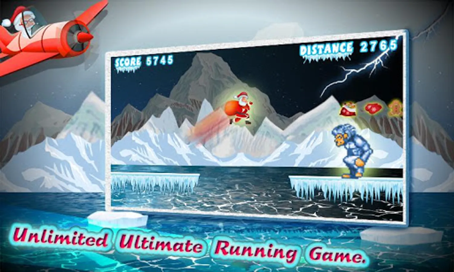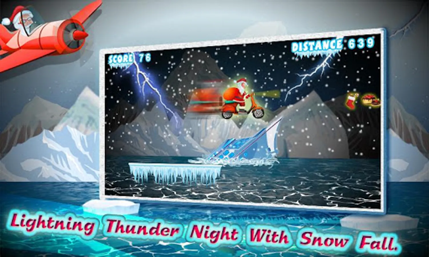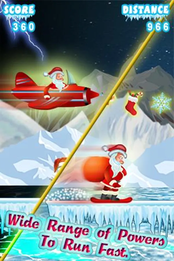 The coolest game of the season Run At North Pole is here to make your Christmas more fun and entertaining. This is cool and simple running game with lots of features. The user has to jump the Santa to collect gifts and avoid obstacles on the running way. User will get plane, scooter, skates and many more stuffs to run through the North Pole. Feel the real lightning thunder night with heavy snow fall. Run more far to discover more interesting features, goodies, hurdles and power-ups. No need to buy anything all are free, you just have to run as long as you can. Enjoy the coolest Christmas game for hours of fun. This game enables you to share your best score on leader board.