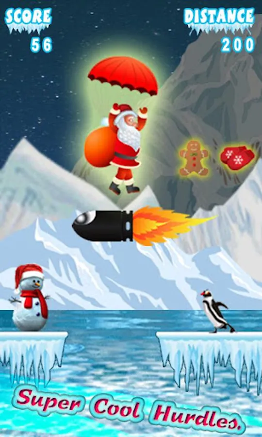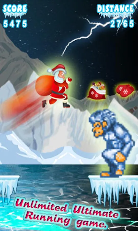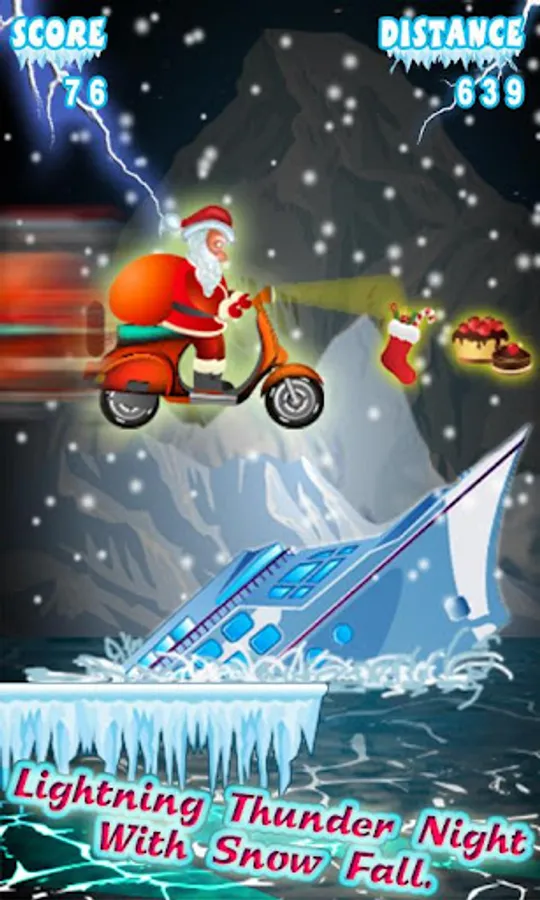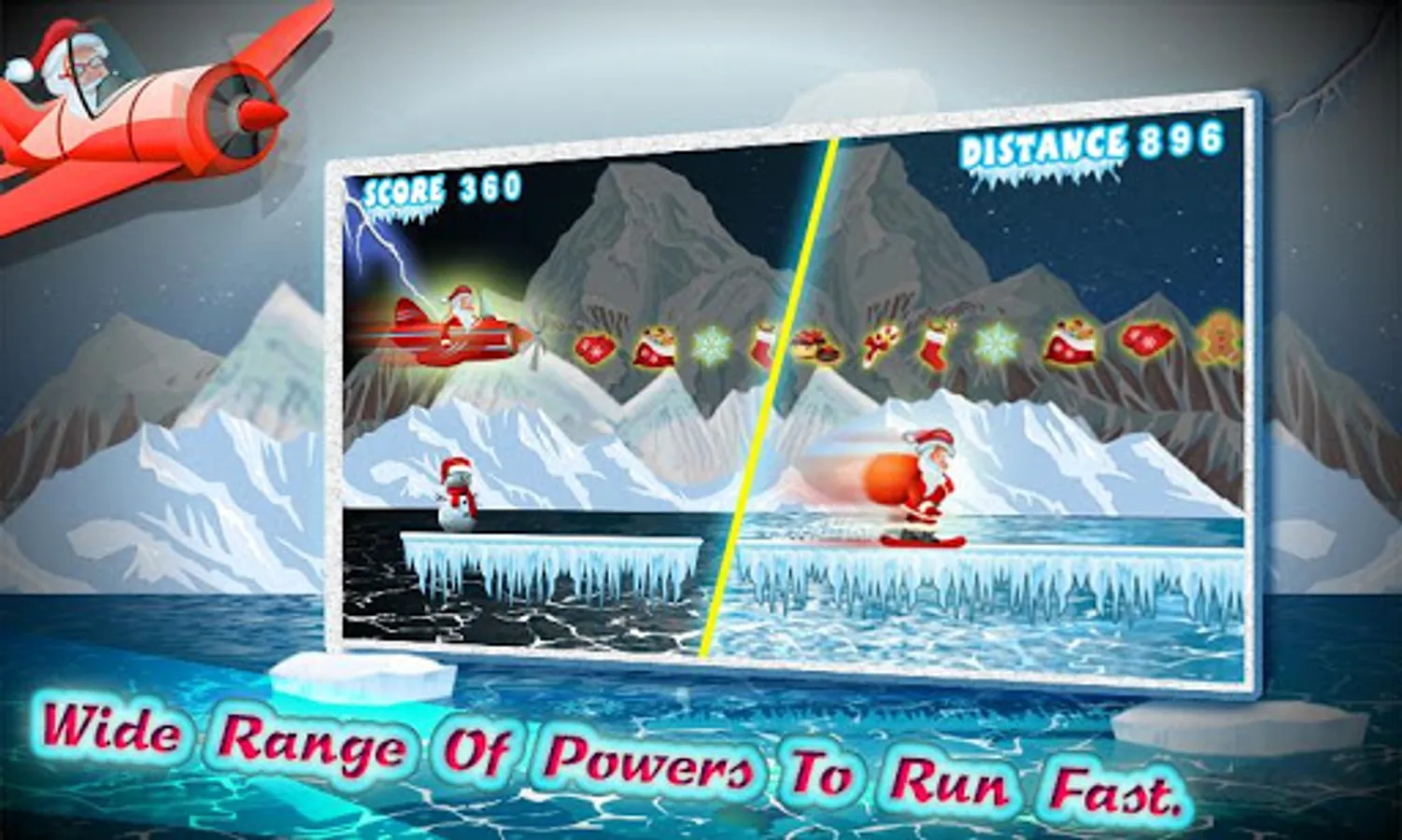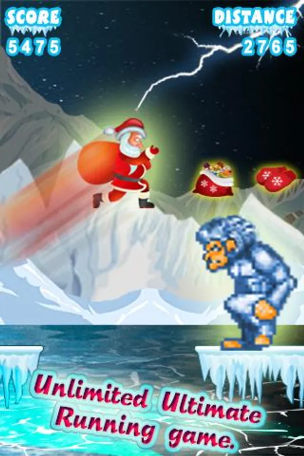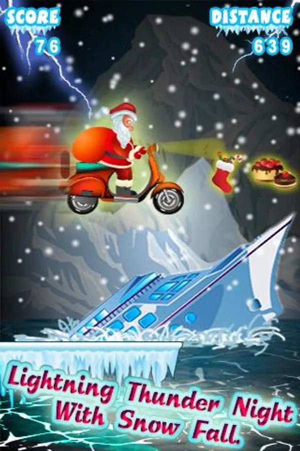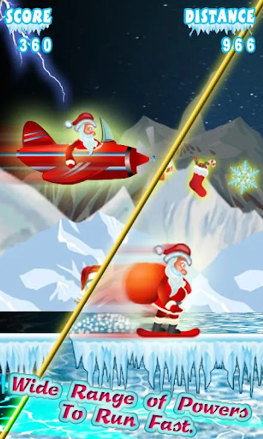 The coolest game of the season Run At North Pole is here to make your Christmas more fun and entertaining. This is cool and simple running game with lots of features. The user has to jump the Santa to collect gifts and avoid obstacles on the running way. User will get plane, scooter, skates and many more stuffs to run through the North Pole. Feel the real lightning thunder night with heavy snow fall. Run more far to discover more interesting features, goodies, hurdles and power-ups. No need to buy anything all are free, you just have to run as long as you can. Enjoy the coolest Christmas game for hours of fun. This game enables you to share your best score on leader board.