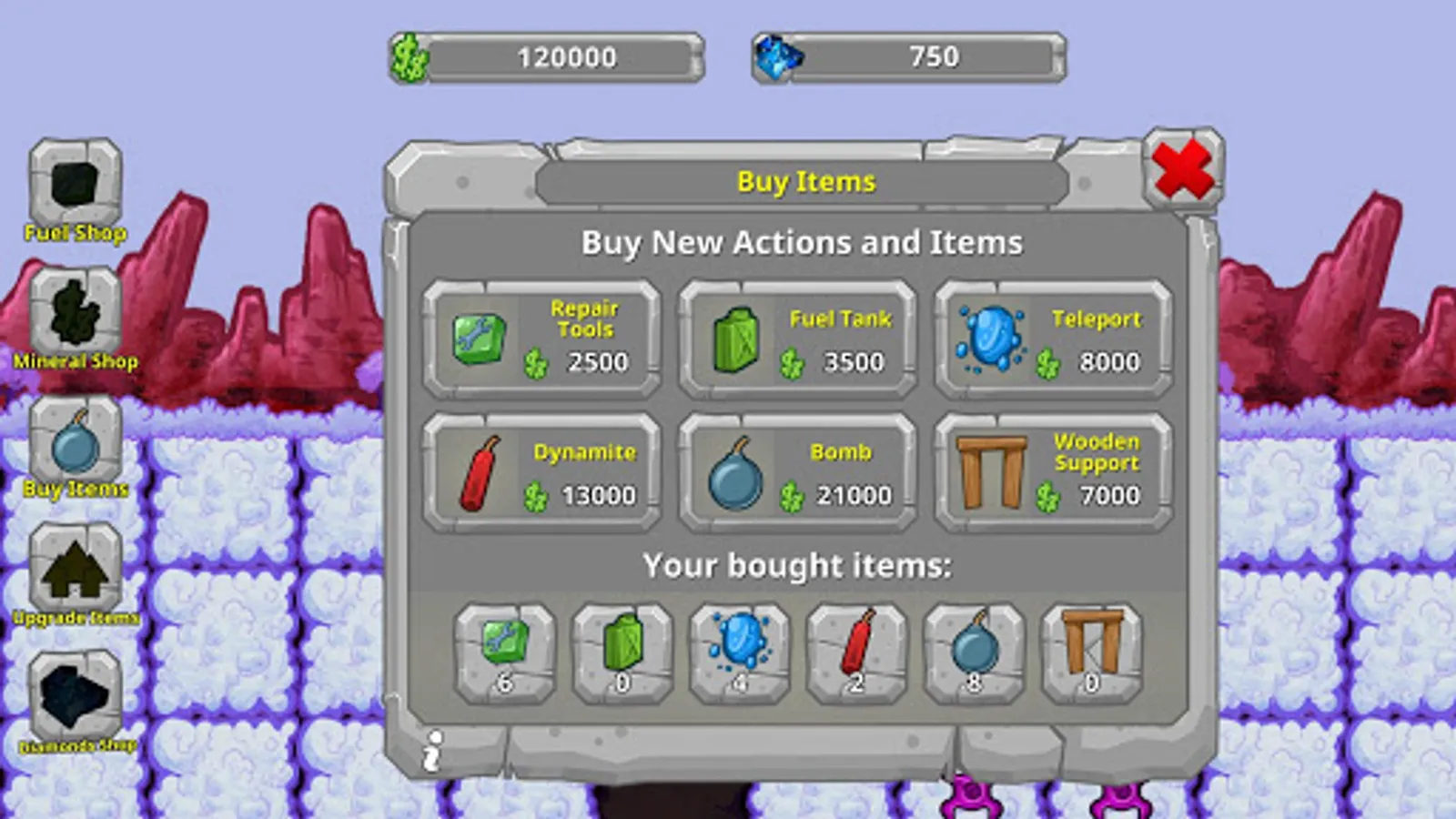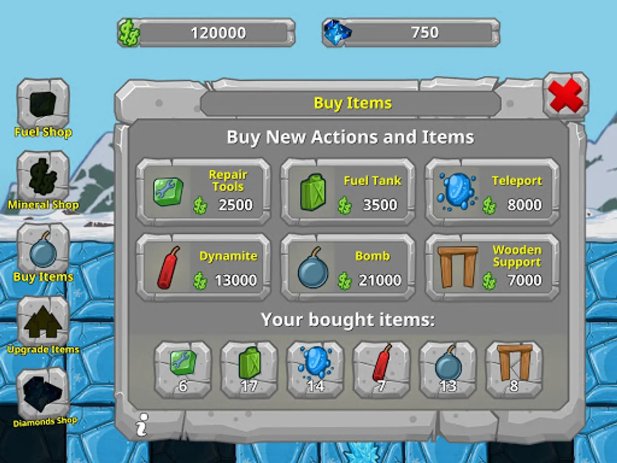 Before achieving your goal, you can build bases, use items and improve your machine which will make your game easier!
