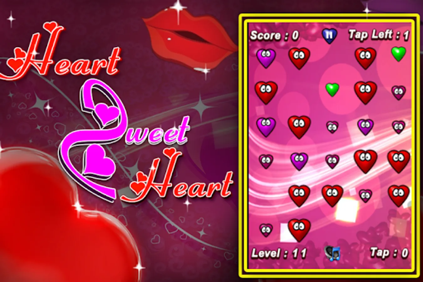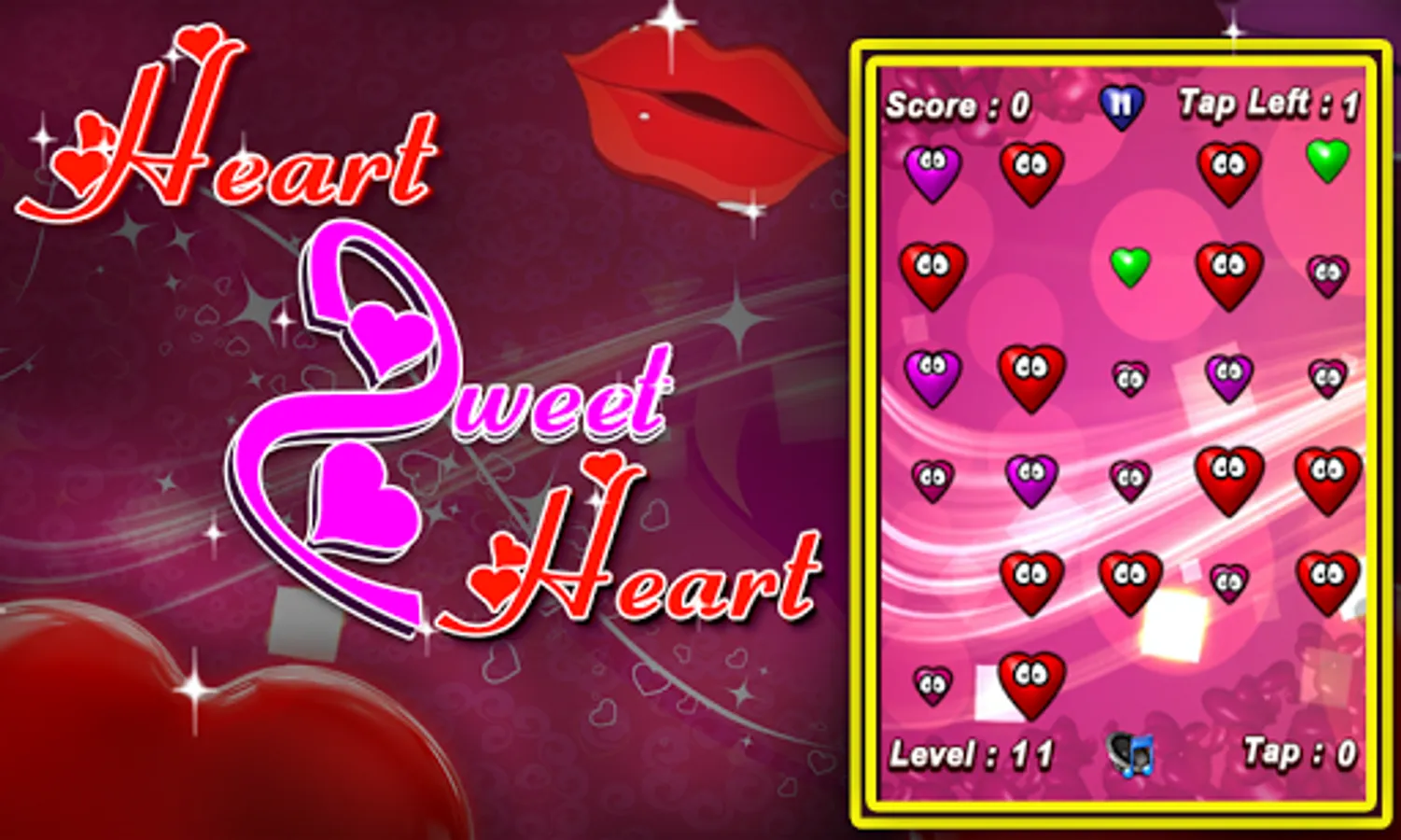 Express your feelings with sweet magical hearts! It is an addictive logic game that has limited taps in each level. Tap on a heart to get a new larger heart, clicking on the biggest heart will make a blast and it will change the size and color of other hearts. You have limited taps in which you have to remove all hearts. If you clear the board you will get next level unlocked.