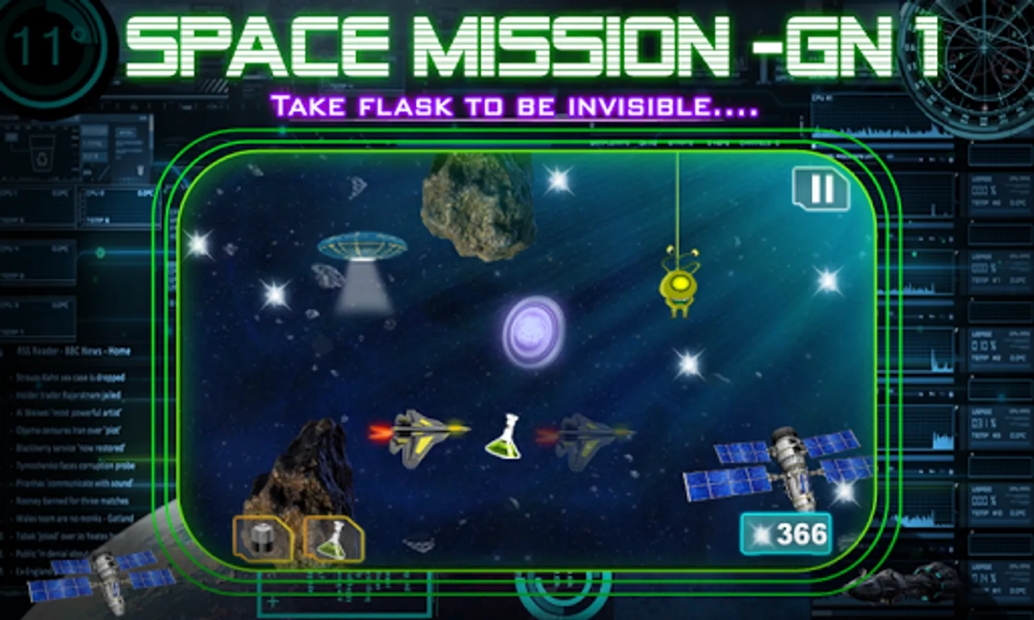 The scientist of our lab has found that there are some magic stones spreaded in the universe which are very precious and can be use to be immortal. So they decide to send a spaceship to collect these magic stones. But this is not as easy as it seems, there are so many slick and greedy hurdles in Space. Be confident and face all the tough situations, you have the powers like boost and invisible.