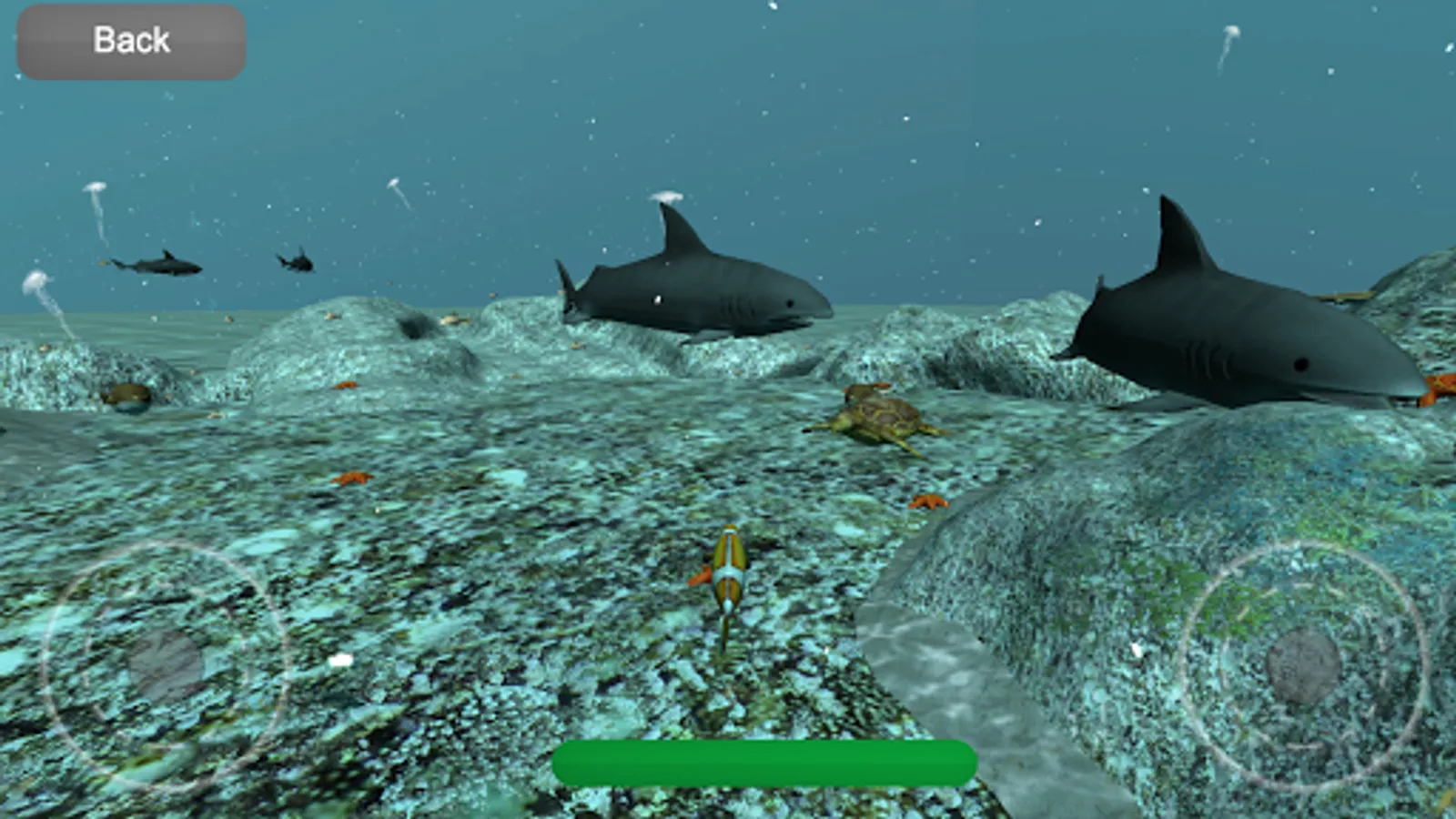 Control your fish in deep sea. Swim amongst different sea creatures such as sharks, blowfishes, jelly fishes and others. Great underwater visual effects and sound effects.