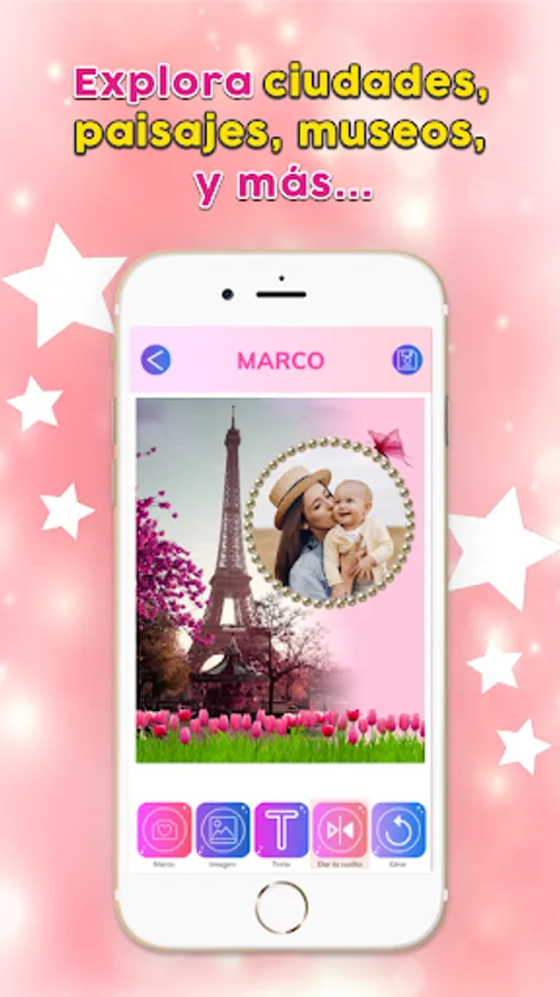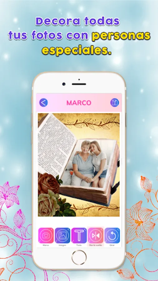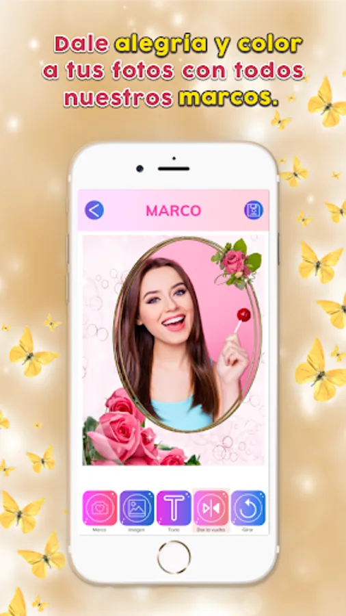A wide variety of fun themes that can decorate your photos to give them a more fun touch. Choose a photo from your gallery and select a category of frames.