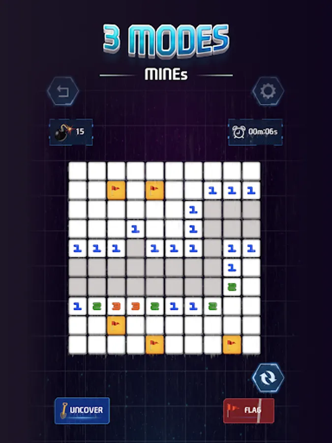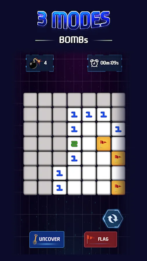 Addictive Minesweeper Gameplay: Uncover hidden mines and strategize your moves to clear the board.