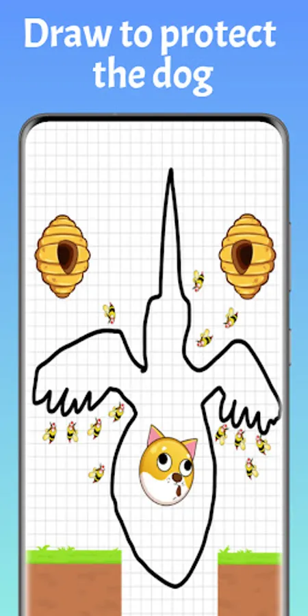 You need to protect the dog with during the attack of the bees, draw a line, save the dog and you will win the game. Use your brain to save the doge in this draw to save the dog.