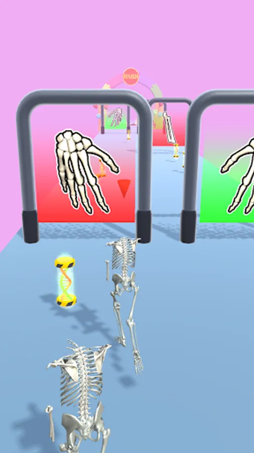 Starting with a skeleton, choose the evolution line for each part of the body.