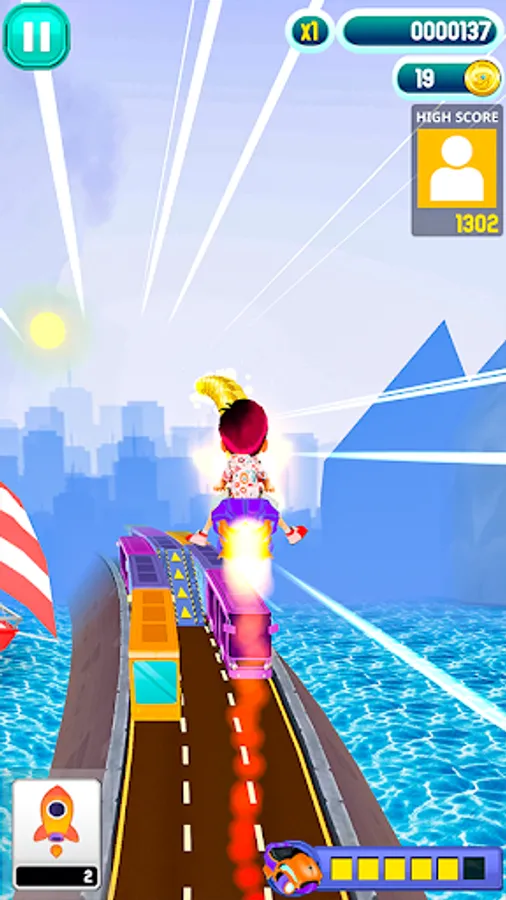 Run for your life before the ticket Officer! Collect as many coins as possible. Use your bonus items to fly away through this amazing fantasy. And finish the bonus level!