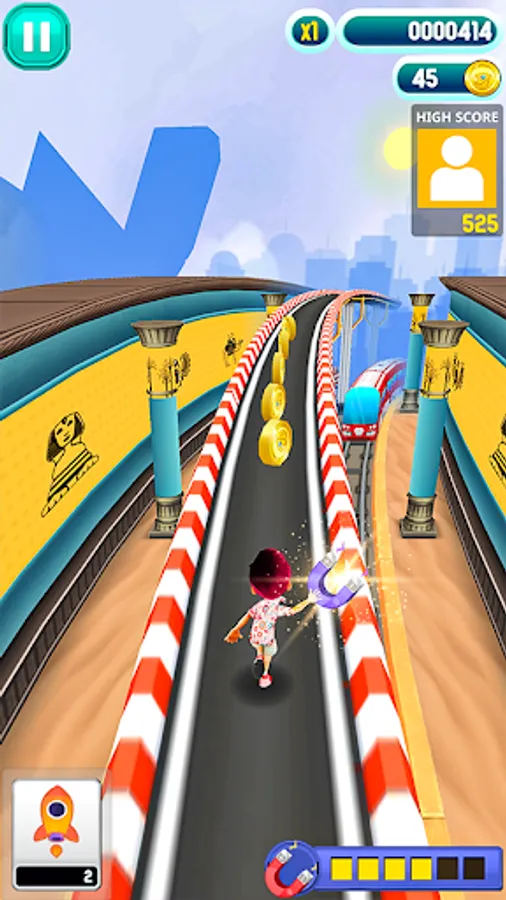 Rush as fast as you can, dodge the oncoming trains. Carefully pass the Obstacles! Intuitive controls to run left or right, jump in the sky to obtain more coins, excited slide to safety!