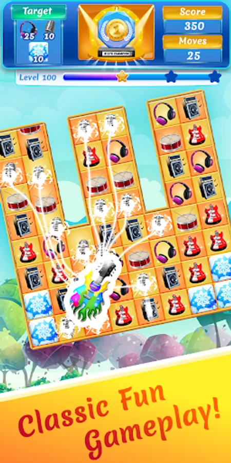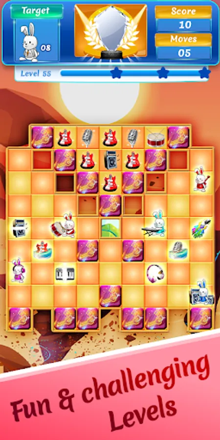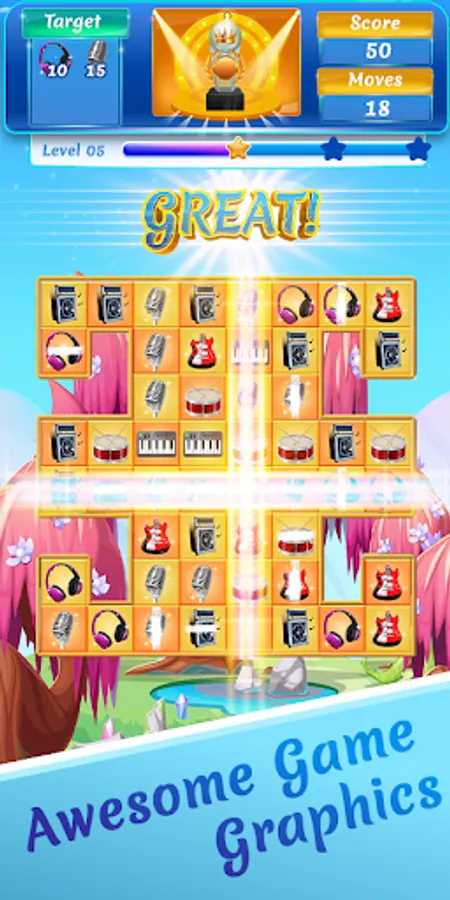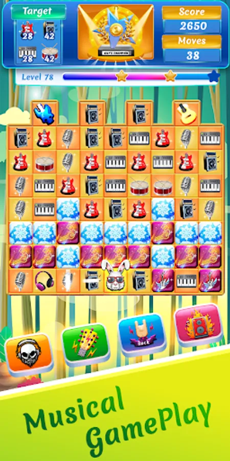Switch and match Musical Instruments in this Musical puzzle adventure to progress to the next level for that Rocking winning feeling! Solve puzzles with quick thinking and smart moves, and be rewarded with combos and many fun ways to advance!
