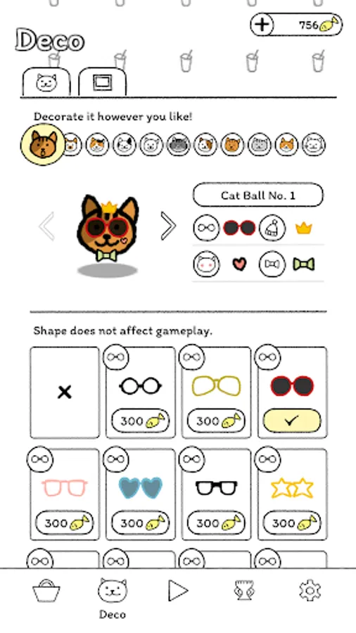 Mix things up by decorating the cats in your preferred style! There are a variety of glasses, hats, ball decorations, and bow tie items that can express the individuality of each cat. You can also change the color of the background.