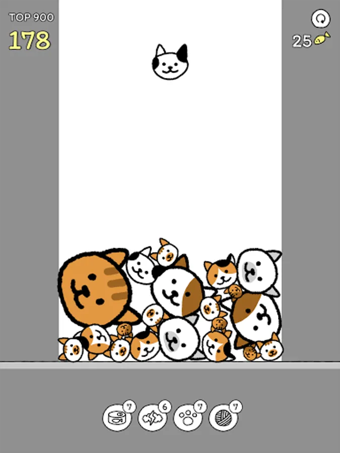 Focus and decide where to drop the cat ball. There is no time limit, so you can take your time. Enjoy the fun of bursting cat balls! If you want a higher score, try using the right items in the right places. Each item can only be used once, so knowing the right timing to use an item is a vital skill!