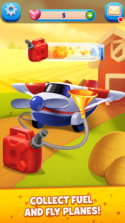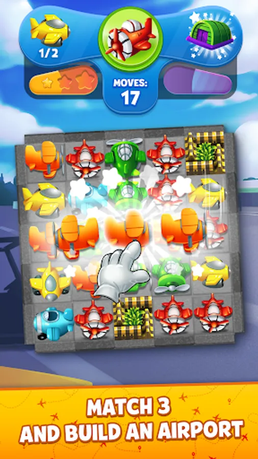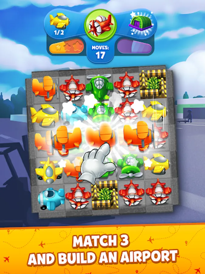 - construct the airport and earn rewards - collect fuel on Match 3 levels, unlock new planes, make them fly and be rewarded!