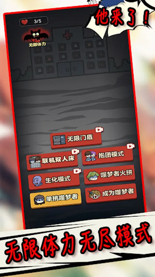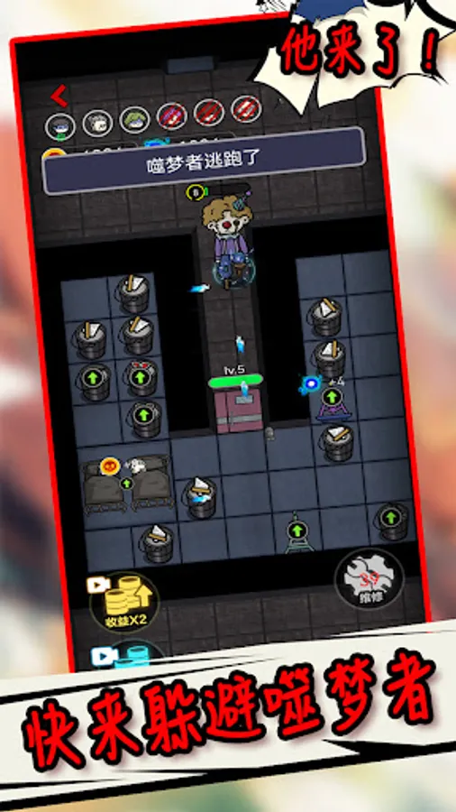 A 2D tower defense game. In the game, players need to avoid the hunt of fierce ghosts, find suitable dormitories to hide from, and develop the economy to build forts to resist fierce ghosts. In the game, players can only build on the empty floor in the room. After the player clicks on the empty floor, the building menu will appear. In the game, players need to build buildings according to their current economic choices and find a path that suits their own development. The player needs to defeat the ghost or resist until dawn to win, otherwise the player loses if the ghost catches the player