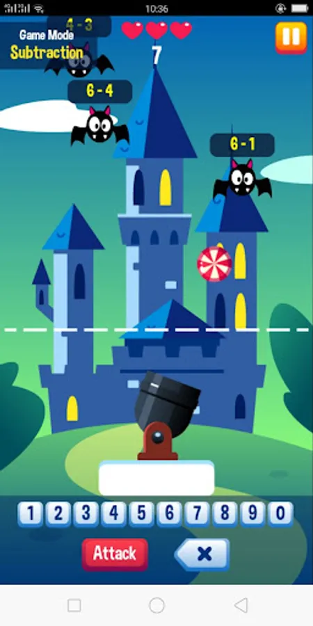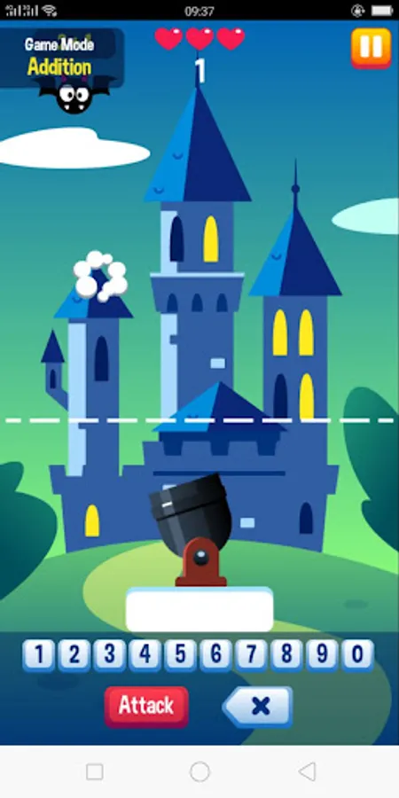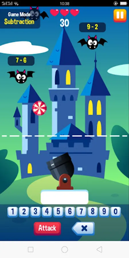 Protect your castle from bats by answering the correct math problems. Keep the bats out of your castle and listen.