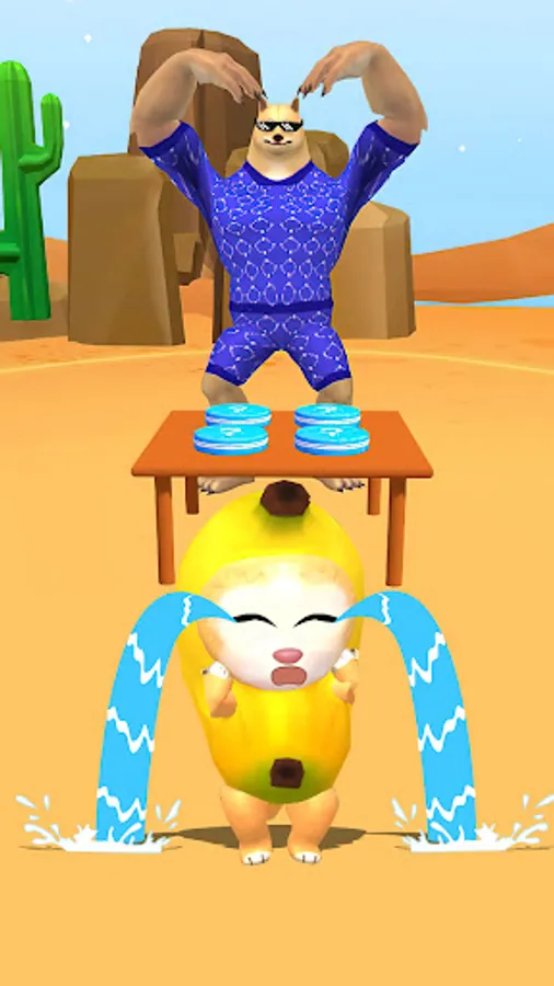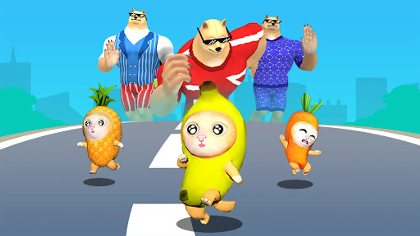 Like a squid game, don't escape, touch the screen to move to cat banana run. Afterward, just run fast while the shiba and monster is counting when green light. And stand still when the doge and monster toilet boss turns his head into a red light, the game will end if you reach the line. Be one of the pet cat - banana survivor!