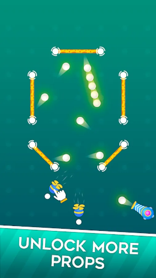 You can buy and set different props to create your own “Perpetual Motion Machines” to find the faster way to make money...or just create a beautiful trajectory of the ball that you like!