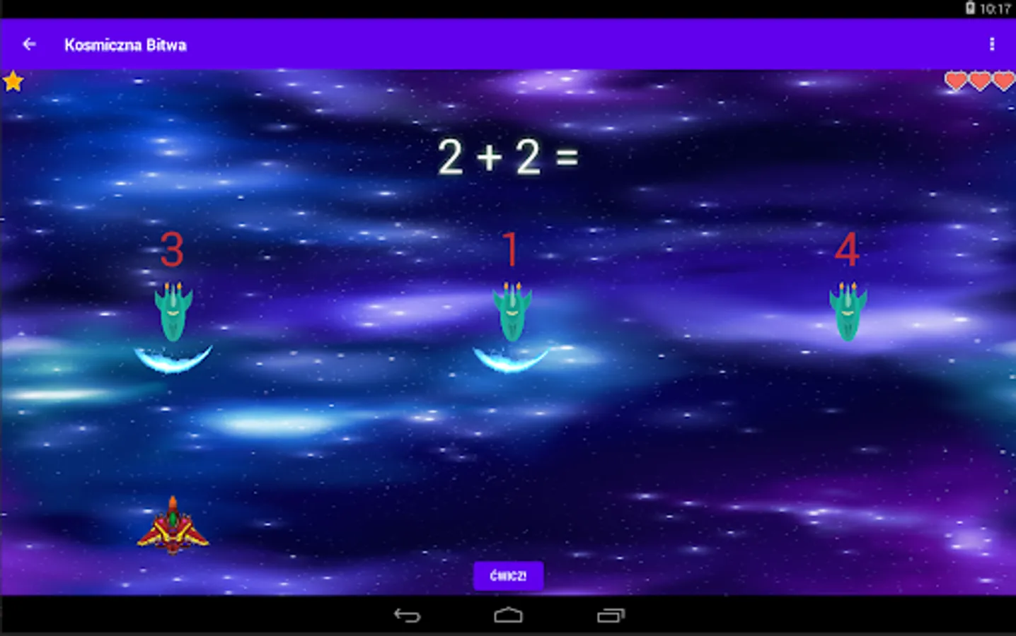 It is worth noting that in each level of the game you will have a different spaceship that adds a bit of variety to your space fleet. However, if at some point you don't feel ready for the next challenges of the space battle yet, you can always go back to training and practice addition. You will find plenty of resources in our app to consolidate your math skills and gain confidence.