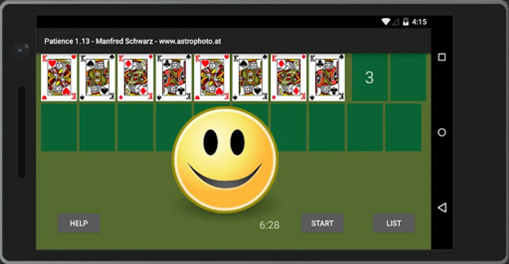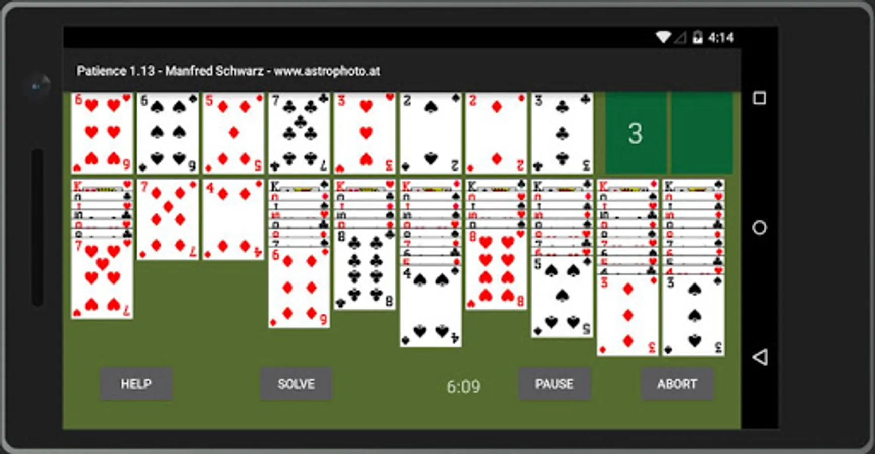 If all cards are open and no card is on the stack, a "Solve" button click brings all cards to the storage places.
