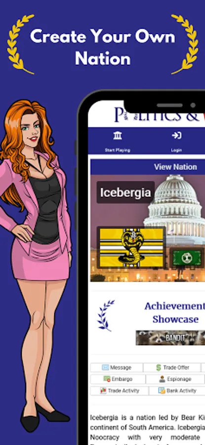 With a thriving community around the game that includes player-run international organizations that handle in-game banking, nation building loans, in-game news organizations, and much more, Politics and War is an online nation building game like no other. Download it for free and start playing today.