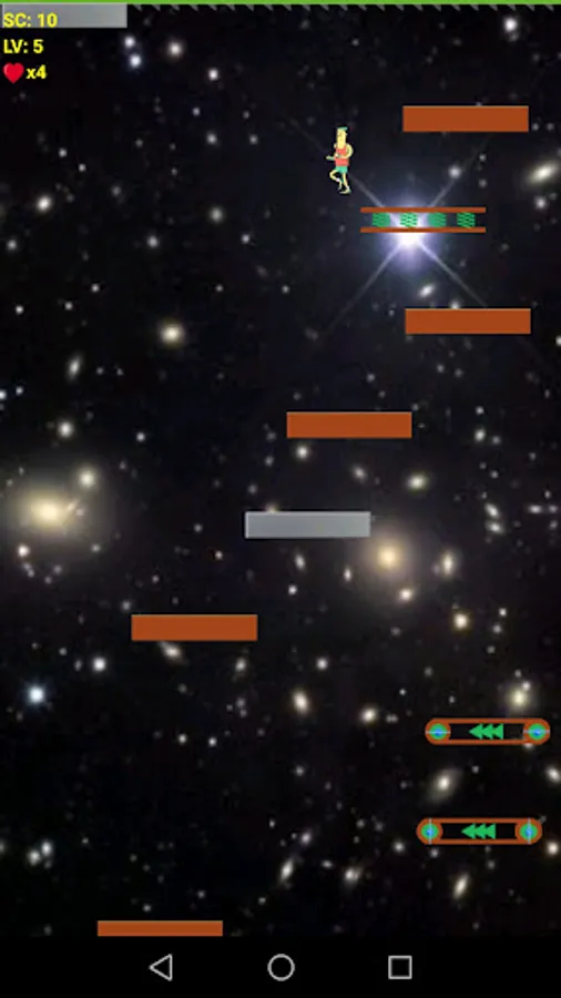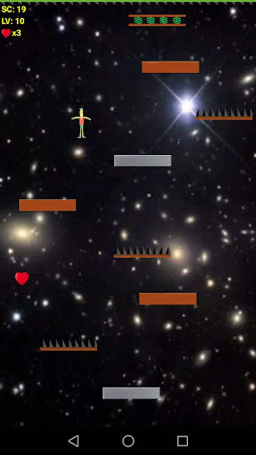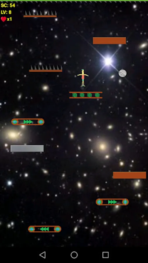 There are various pedals in the game, strong, fragile, flexible, and pedals with traps. You need to jump on a sturdy pedal as much as possible and avoid touching the pedal with traps, otherwise, it will reduce one chance.
