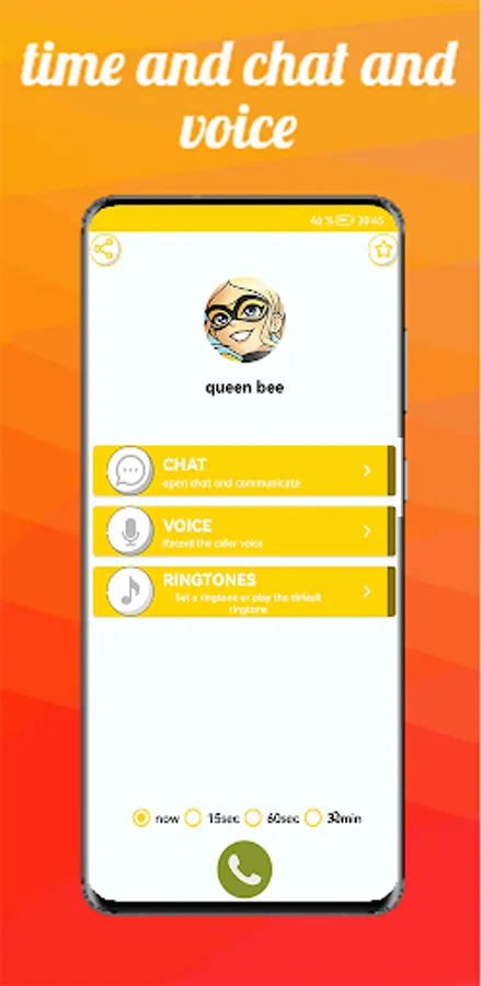 simulate a fake caller queen bee monster to rescue yourself from ladybee, annoying conversation, meaningless interview. create a call queen bee girl being called.
