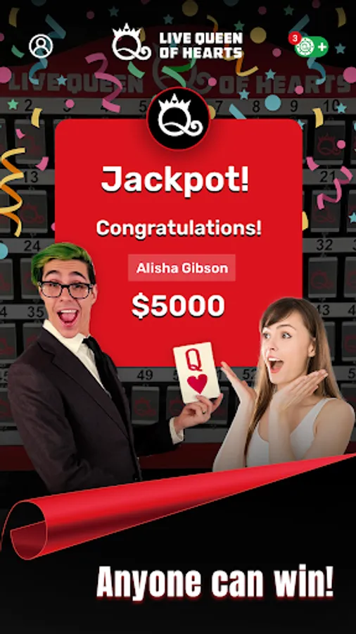 For each drawing, one token will be pulled for a chance to uncover a card. Uncover the Queen of Hearts and win the jackpot! Each week the Queen of Hearts is not uncovered, the jackpot gets bigger! Uncover an Ace, another Queen, or a BONUS card and WIN a PRIZE!