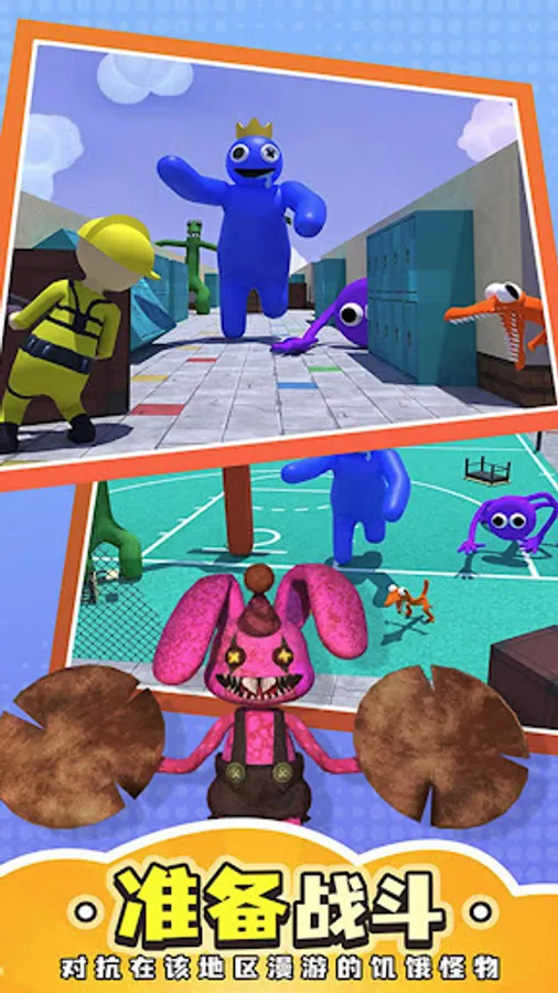 Super hot rainbow friends peek-a-boo horror adventure mini game. Stimulate hide-and-seek to break through the level to open new challenges, dangerous plots will happen, and the background style will change, strive to survive to the end. There are two camps, the hiders and the seekers, and there are different challenges to complete depending on the camp. As a hider, you need to avoid the seeker at all times. They will have skills to easily locate you, so change positions frequently. When looking for a person, because the map inside is very large, try to remember the general terrain, and you can roughly determine the direction when you hear the footsteps.