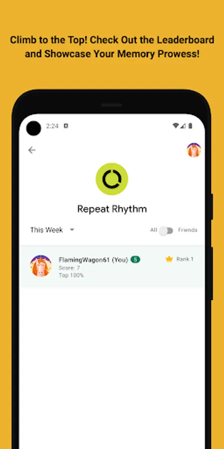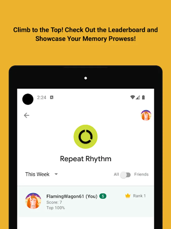 Dive into an electrifying memory challenge with Repeat Rhythm! Engage your senses in this mesmerizing game that tests your memory and reflexes. Follow the vibrant patterns, tap to the beat, and race against time to level up. With an array of captivating levels and increasing difficulty, can you dominate the leaderboard and become the ultimate memory master? Immerse yourself in the rhythm, tap to perfection, and let your memory prowess shine! 🎵🔥