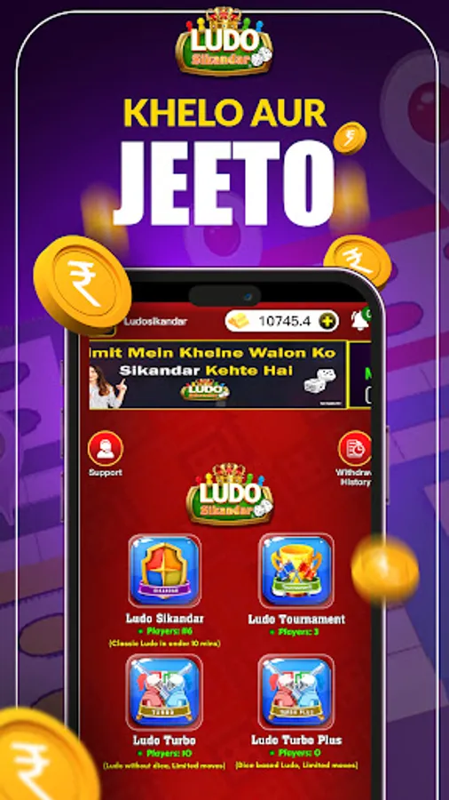 SikandarJi Ludo has Timer Classic, Turbo and Tournament Modes. Timer Classic Mode has Classic Ludo with 10 Minute Time Limit. Turbo Mode has open dices means all upcoming dice number will be visible on game start. And Tournament Mode has Ludo Tournaments.