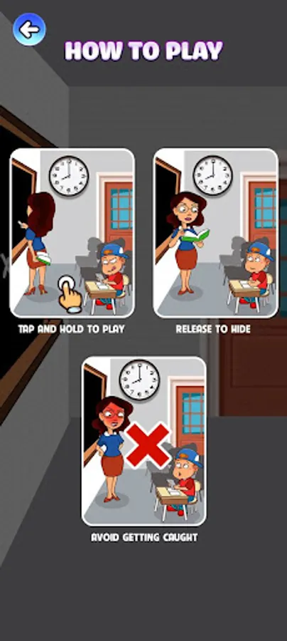 Hold & release mechanic, to perfectly time your game without getting caught by the teacher.