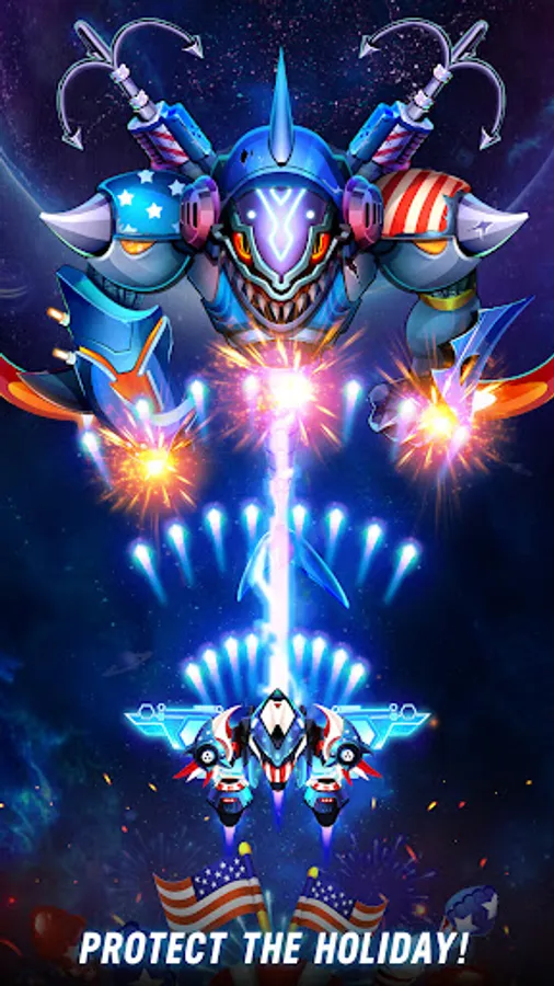 - Epic and huge bosses: Show-off your skills. Enjoy arcade galaxy shooter game space combat - powered up