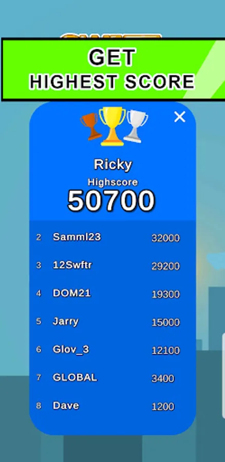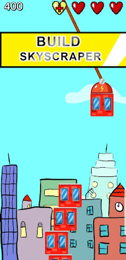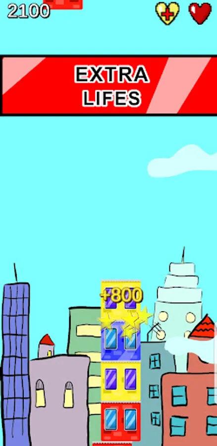 You have to tap very accurately and stack new blocks. If you miss, dont worry! There are 3 extra lives. Each block can give you extra points and as you move higher things get harder. Always be on the lookout, you might just catch a powerup! There are 3 different powerups that can give you huge advantage. You can compete against others for the highest skyscraper on the leaderboard.